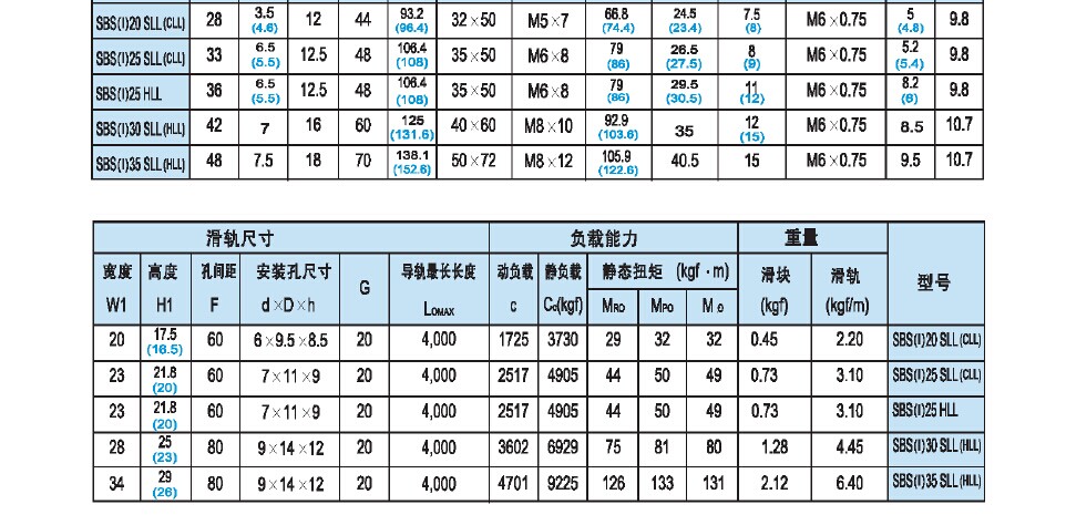 直线导轨是一种滚动导引,它由钢珠在滑块与导轨之间作无限滚动循环,使得负载平台能沿着导轨轻易的以高精度作线性运动,其摩擦系数可降至传统滑动导引的1/50,使之能轻易地达到μm级的定位精度 • 四方向等负载设计. • 运行顺畅新型钢珠循环方式. • 高刚性-四排珠45度角接触. • 世界标准规格尺寸. • 高精度、低摩擦系数、低维修成本. • 高移动速度、低噪音. • 全密封式油封. • 可互换设计. 低组装方型型号:SBS15SL SBS20SL SBS20SLL SBS25SL SBS25SLL SBS30SL SBS30SLL SBS35SL SBS35SLL SBS45SL SBS45SLL 低组装缩小法兰型型号:SBS15FV SBS20FV SBS25FV 低组装缩小方型型号:SBS15SV SBS20SV SBS25SV