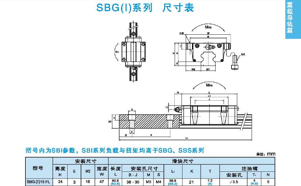 设备详细说明 设备详细描述(韩国SBC直线导轨SBG(I)法兰滑块系列)