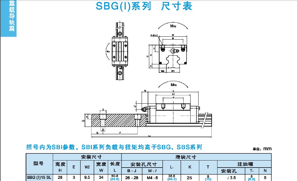 设备详细说明 设备详细描述(韩国SBC直线导轨样本资料)