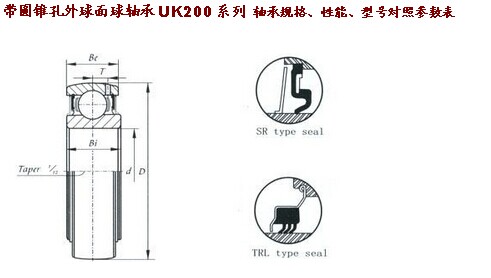 带偏心套的外球面球轴承与带顶丝的外球面轴承性能基本相同,只是顶丝不在内圈上,而是在偏心套上。圆锥孔外球面球轴承的内孔为带1:12锥度的圆锥孔,可直接安装在锥形轴上,或借助紧定衬套安装在无轴肩光轴上,并可微调轴承游隙。