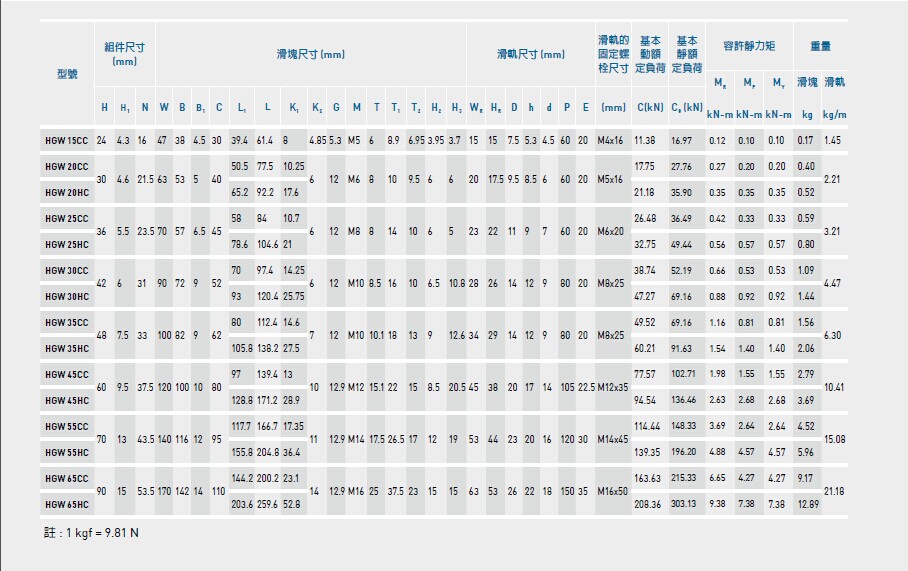 设备详细描述(台湾HIWIN直线导轨HGW系列): |
