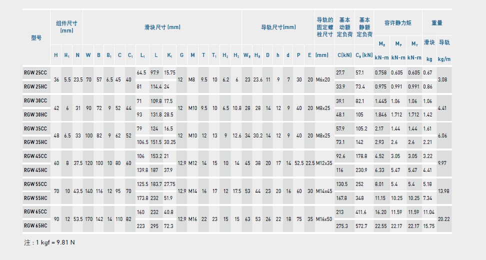设备详细描述(台湾HIWIN滚珠导轨RGW系列): |